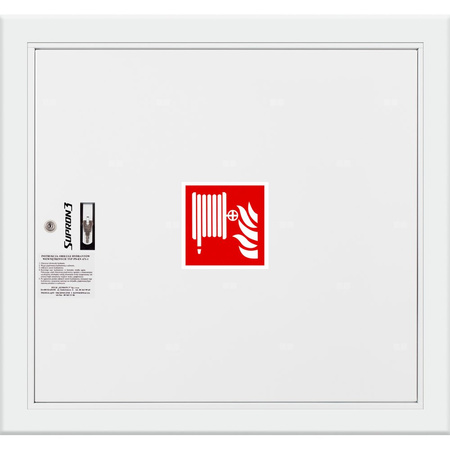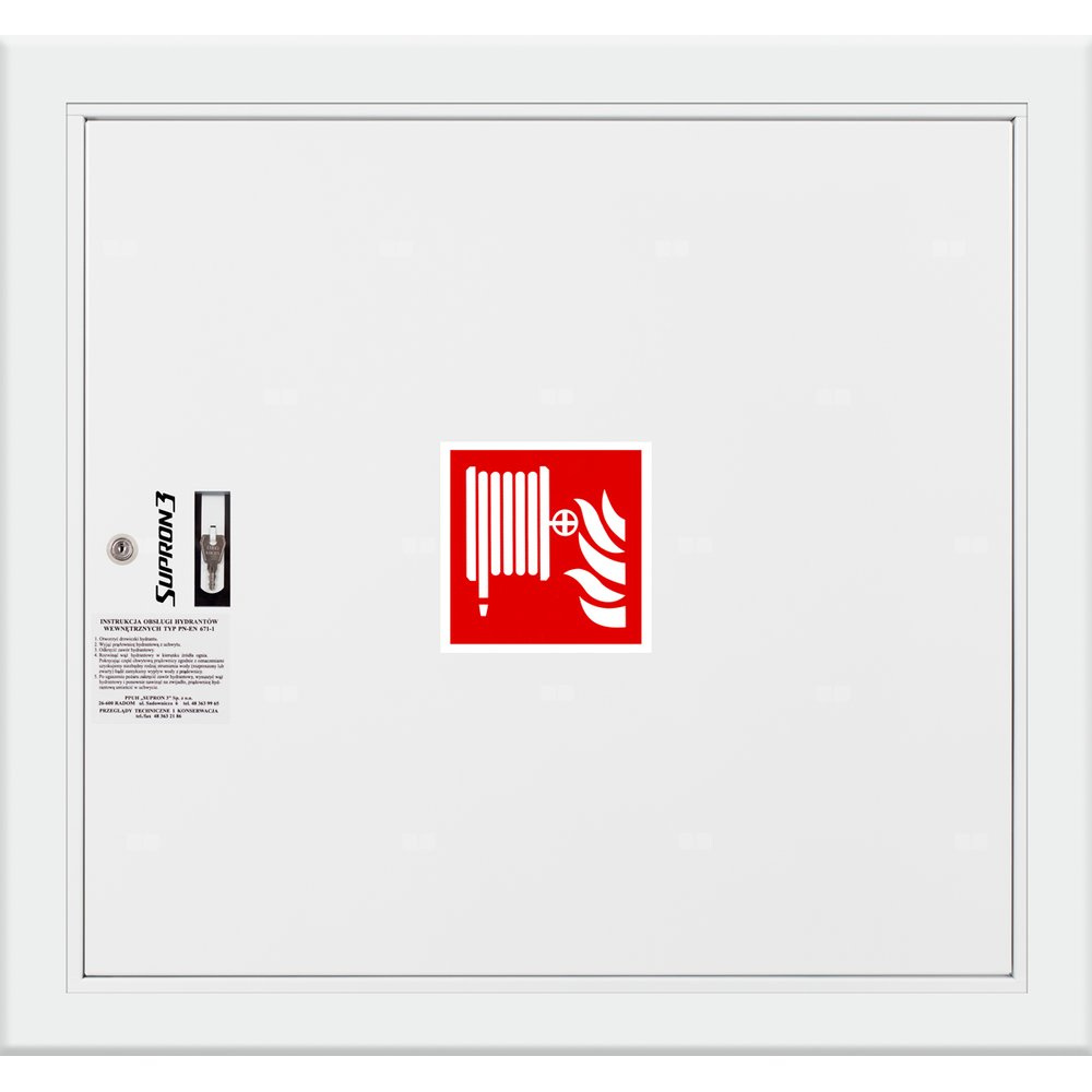 - szafka hydrantowa STANDARD wykonana z blachy czarnej malowanej farbą proszkową poliestrową fasadową typ Facade w kolorze czerwonym (RAL 3000) lub białym (RAL 9003), drzwi pełne; dzięki zastosowaniu zawiasu krytego drzwi szafki można otworzyć o 180°