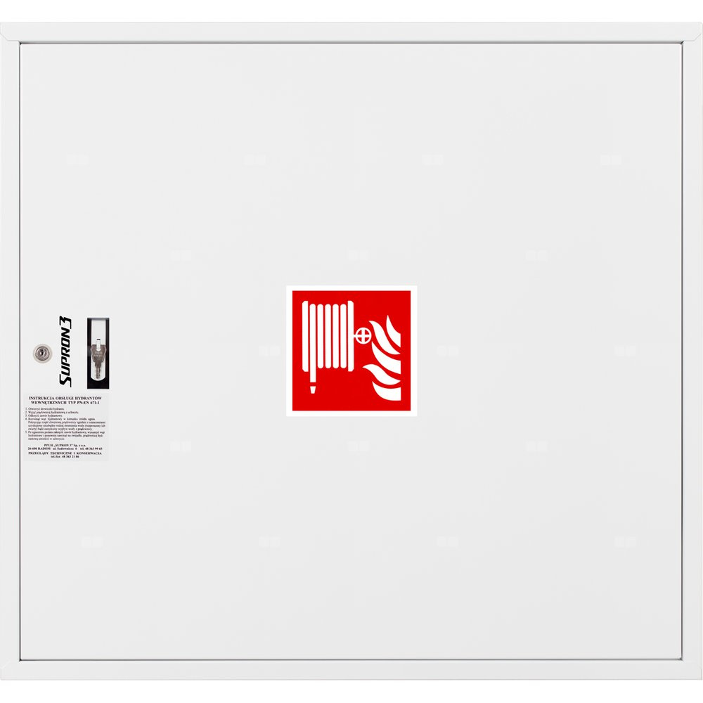 - szafka hydrantowa STANDARD wykonana z blachy czarnej malowanej farbą proszkową poliestrową fasadową typ Facade w kolorze czerwonym (RAL 3000) lub białym (RAL 9003), drzwi pełne; dzięki zastosowaniu zawiasu krytego drzwi szafki można otworzyć o 180°
