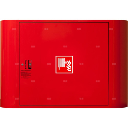 • szafka hydrantowa STANDARD wykonana z blachy czarnej malowanej farbą proszkową poliestrową fasadową typ Facade w kolorze czerwonym (RAL 3000) lub białym (RAL 9003), drzwi pełne; dzięki zastosowaniu zawiasu krytego drzwi szafki można otworzyć o 180°
