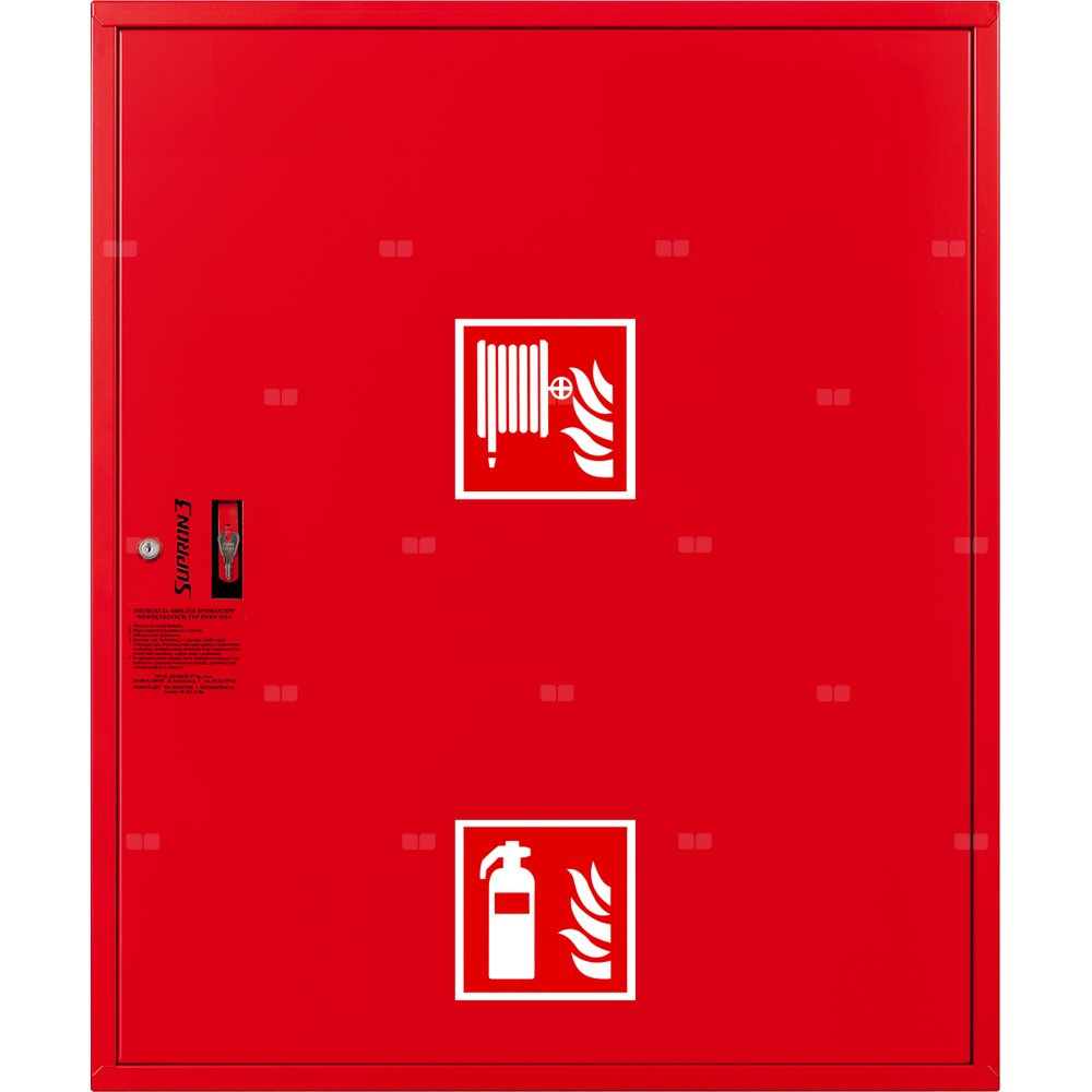 Hydrant DN 25 FIT zawieszany z miejscem na gaśnice pod zwijadłem, wąż 20 m, zamek patent, RAL 3000
