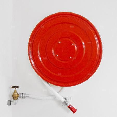 - wąż tłoczny półsztywny φ25 mm o długości 20 m lub 30 m zgodny z normą PN-EN 694, na stałe podłączony do osi wodnej poprzez zakucie