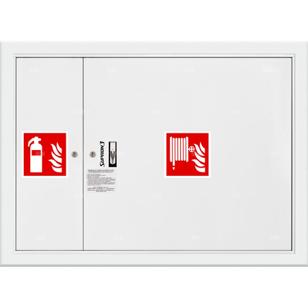 Hydrant DN 25 wnękowy z miejscem na gaśnicę obok zwijadła, wąż 30 m, zamek patent, RAL 9003