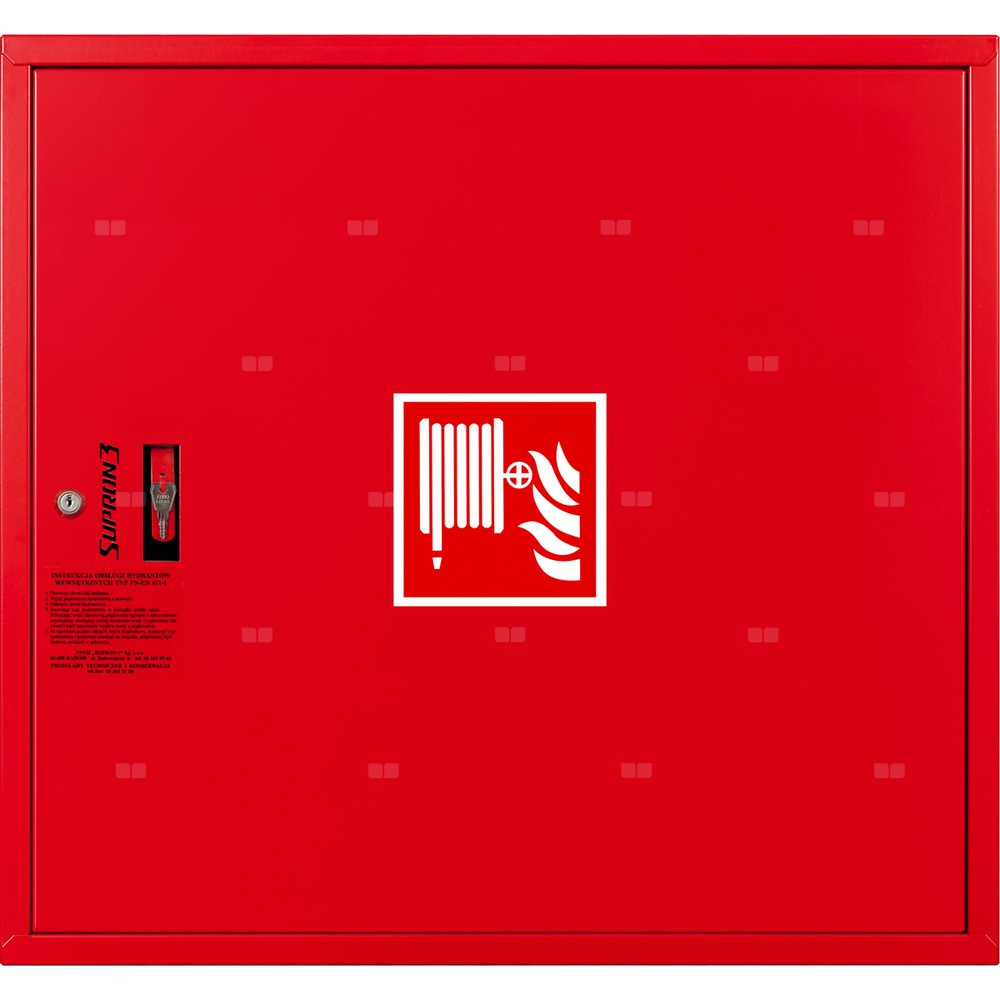 - szafka hydrantowa STANDARD wykonana z blachy czarnej malowanej farbą proszkową poliestrową fasadową typ Facade w kolorze czerwonym (RAL 3000) lub białym (RAL 9003), drzwi pełne; dzięki zastosowaniu zawiasu krytego drzwi szafki można otworzyć o 180°