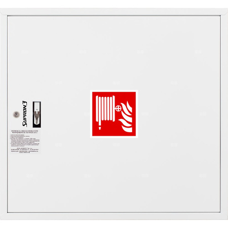 - szafka hydrantowa STANDARD wykonana z blachy czarnej malowanej farbą proszkową poliestrową fasadową typ Facade w kolorze czerwonym (RAL 3000) lub białym (RAL 9003), drzwi pełne; dzięki zastosowaniu zawiasu krytego drzwi szafki można otworzyć o 180°
