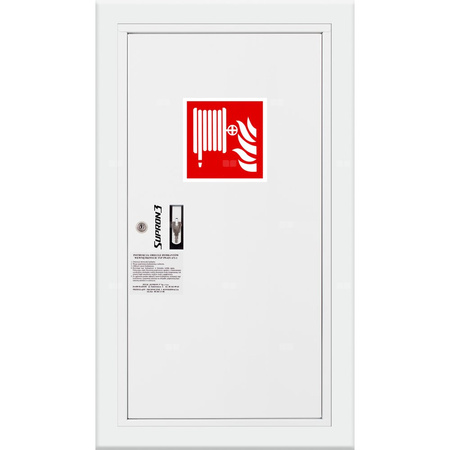 - szafka hydrantowa OCYNKOWANA wykonana z blachy stalowej ocynkowanej elektrolitycznie malowanej farbą proszkową poliestrową fasadową typu Facade w kolorze czerwonym (RAL 3000) lub białym (RAL 9003), drzwi pełne; dzięki zastosowaniu zawiasu krytego drzwi szafki można otworzyć o 180°
