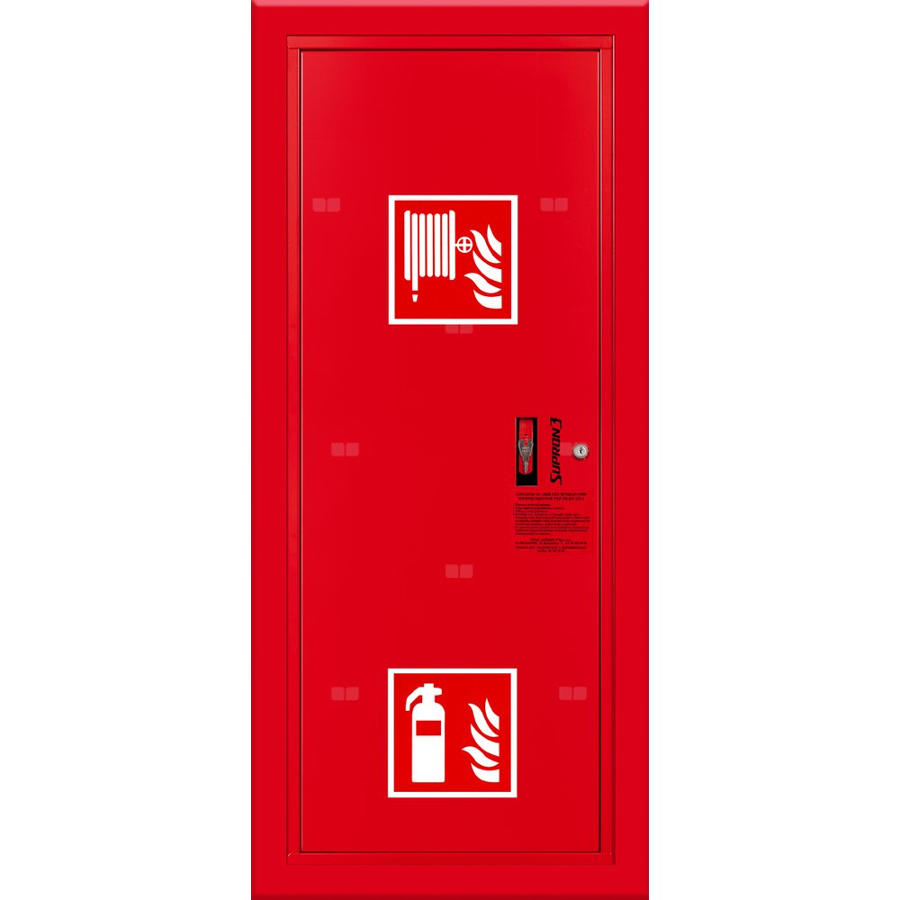 Hydrant DN 33 wnękowy boczny z miejscem na gaśnicę, wąż 30 m, ocynk fasada, zamek patent, RAL 3000 lewy