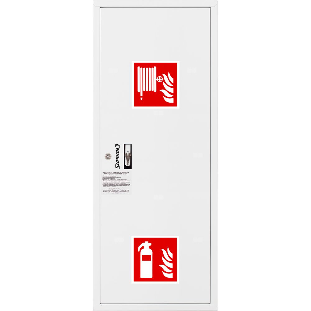 - szafka hydrantowa OCYNKOWANA wykonana z blachy stalowej ocynkowanej elektrolitycznie malowanej farbą proszkową poliestrową fasadową typu Facade w kolorze czerwonym (RAL 3000) lub białym (RAL 9003), drzwi pełne; dzięki zastosowaniu zawiasu krytego drzwi szafki można otworzyć o 180°