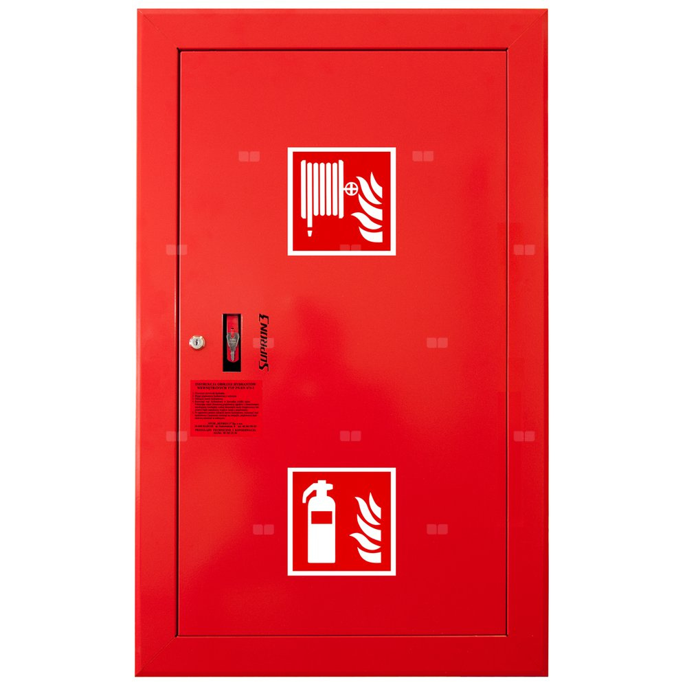 Hydrant DN 52 wnękowy z koszem, 850x500x200 mm, z miejscem na gaśnicę, wąż 2x20 m, zamek patent, RAL 3000