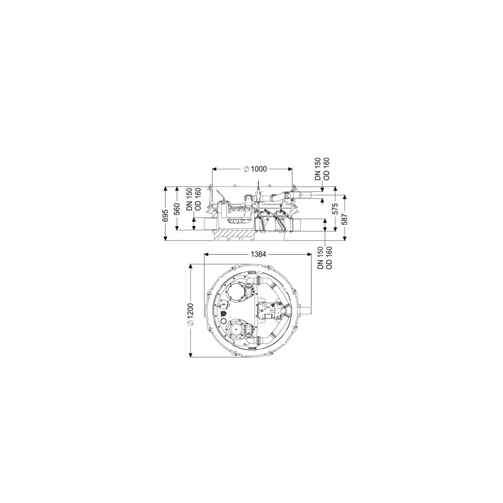 - Wielkość nominalna dopływu (DN): 150 mm
