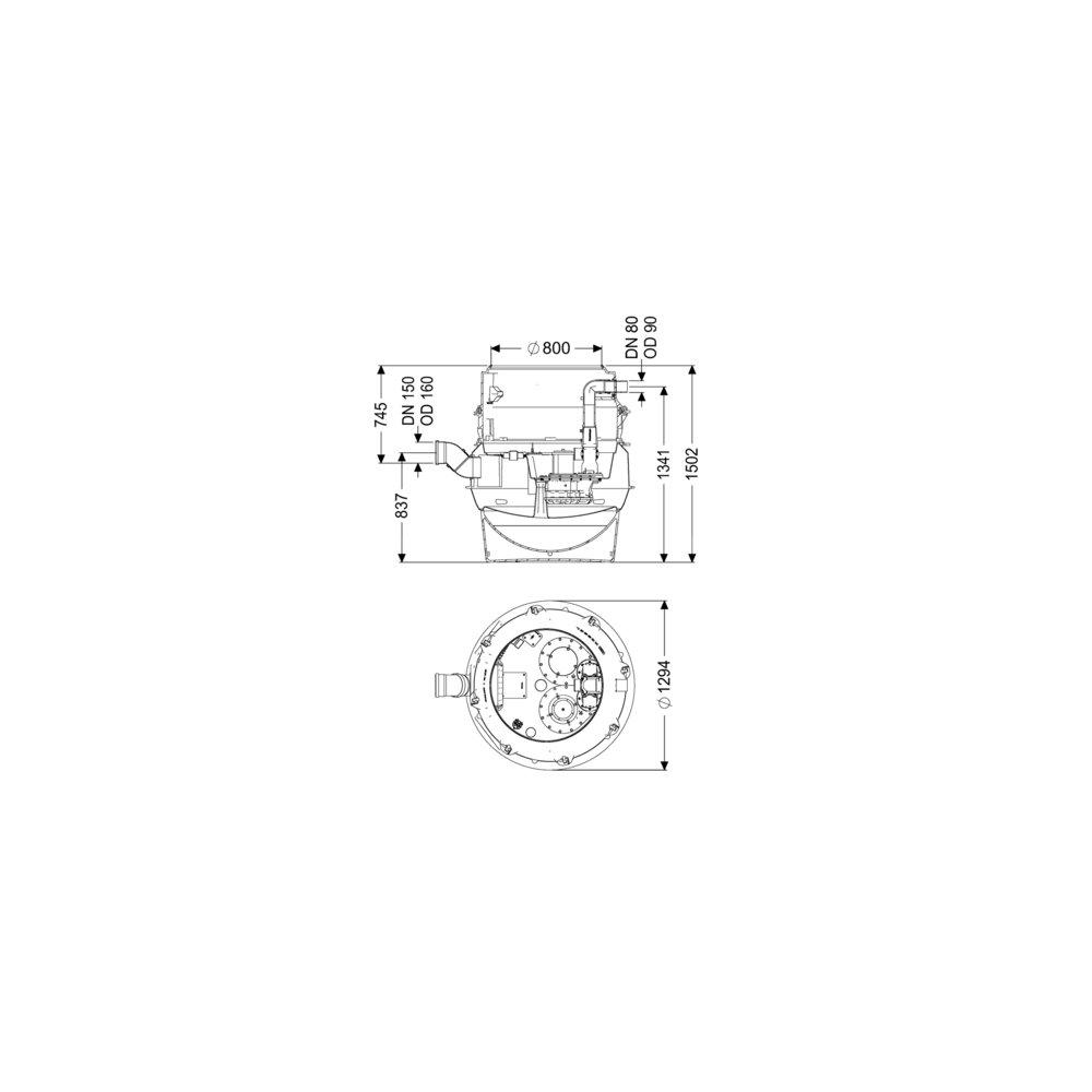 KESSEL Przepompownia Aquapump XL, Tronic, ścieki fekalne, zabudowa w ziemi, wysokość 1500 mm, sterowanie pompą przez sterownik, z pompą zatapialną SPF 3000, typ pracy S3 - 50%, rozpoznawania poziomu pneumatyczny