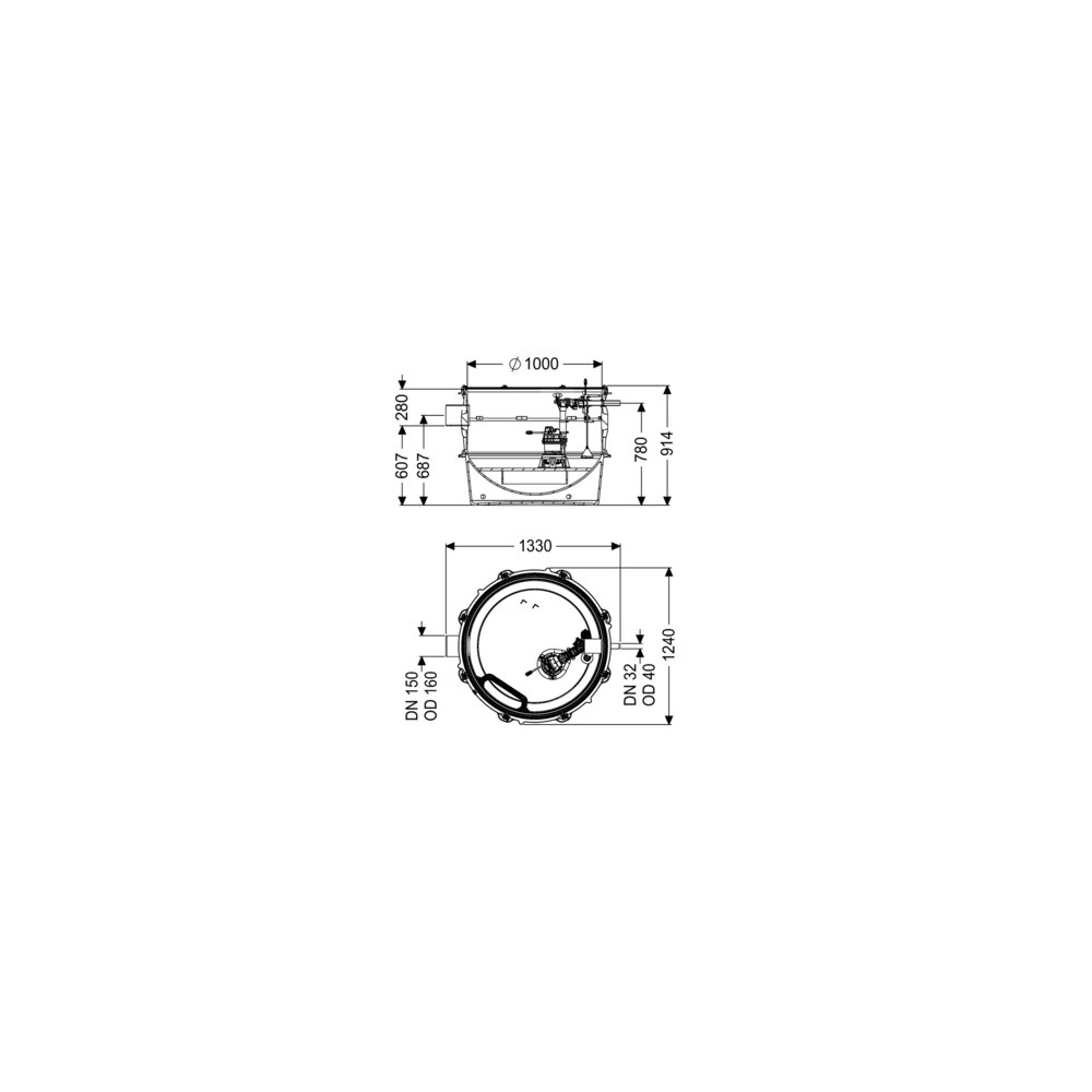 - Odstęp między środkiem rury dopływowej a dnem zbiornika: 687 mm
