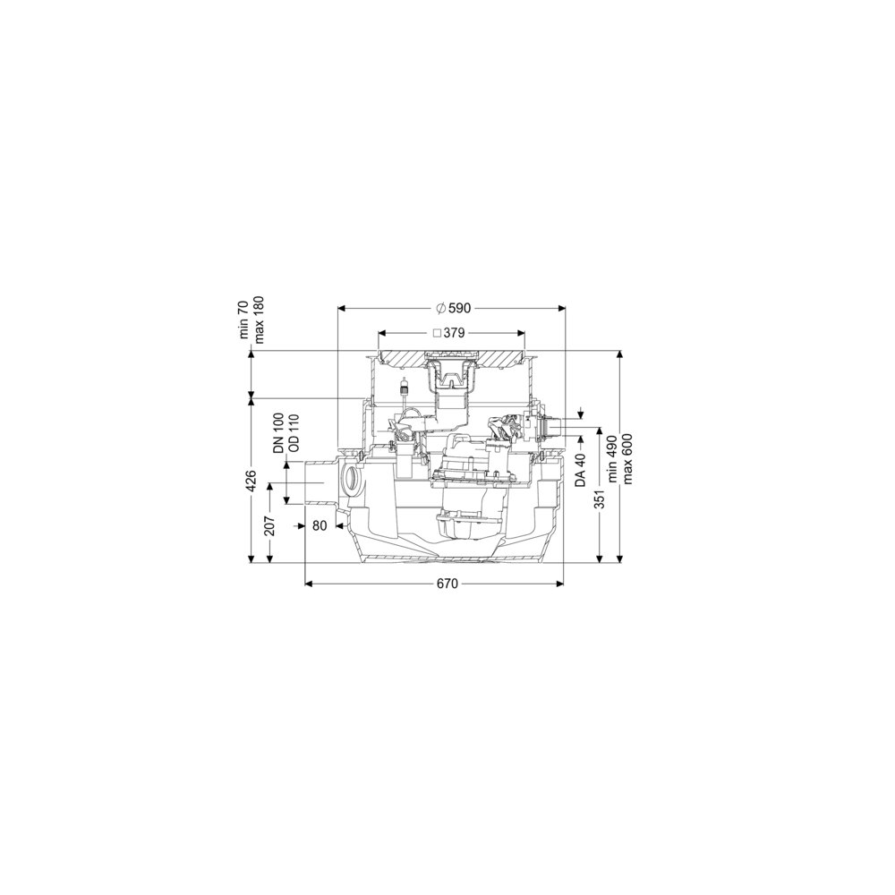 KESSEL Przepompownia Aqualift F Compact Duo, ścieki fekalne, typ pokrywy pokrywa z rusztem szczelinowym, zabudowa w płycie podłogowej, głębokość zabudowy 490 - 600 mm, urządzenie dwupompowe, z 2 SPZ 1000 pomp zatapialnych