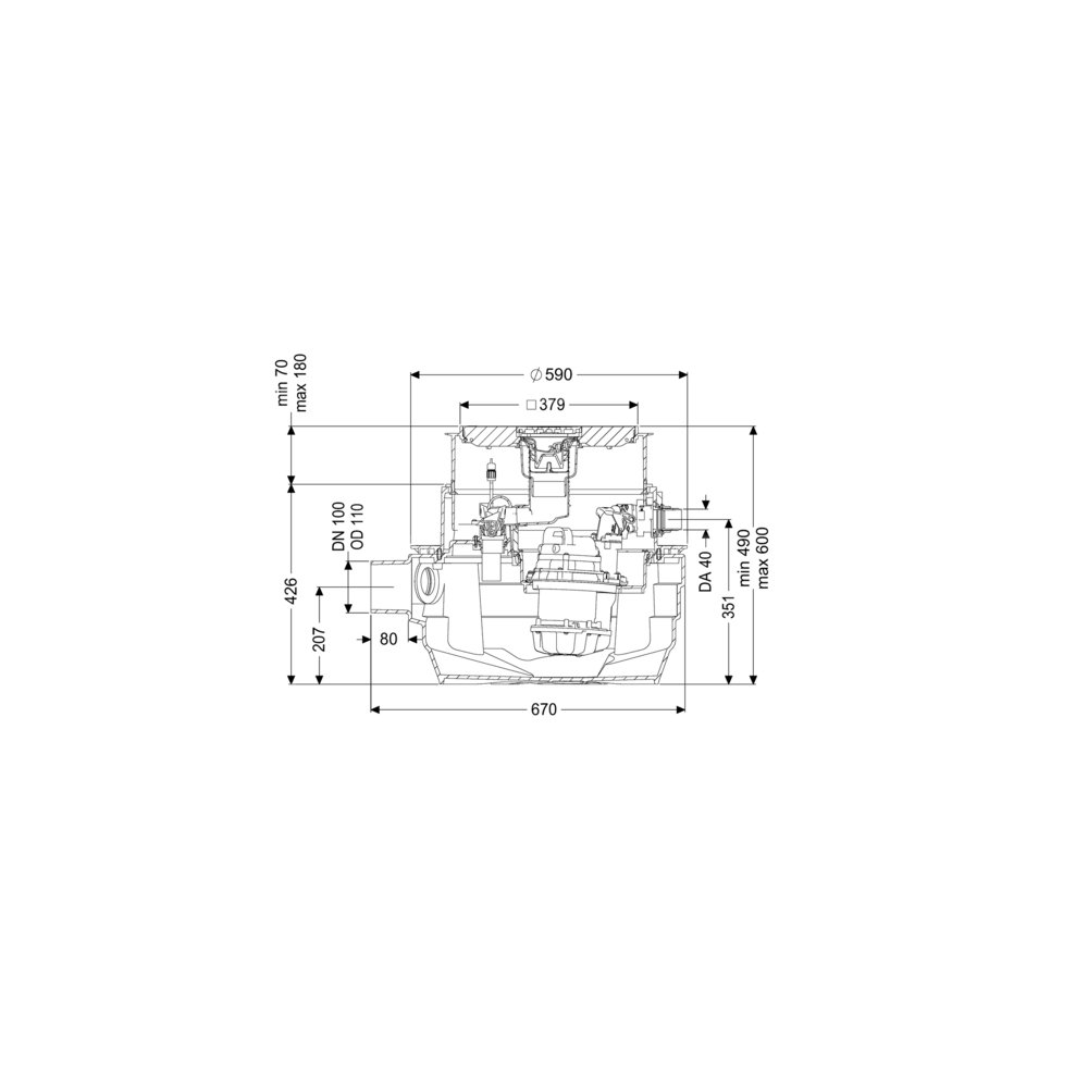 KESSEL Przepompownia Aqualift F Compact Mono, ścieki fekalne, typ pokrywy pokrywa z rusztem szczelinowym, zabudowa w płycie podłogowej, głębokość zabudowy 490 - 600 mm, Pojedyncza jednostka, z pompą zatapialną SPZ 1000