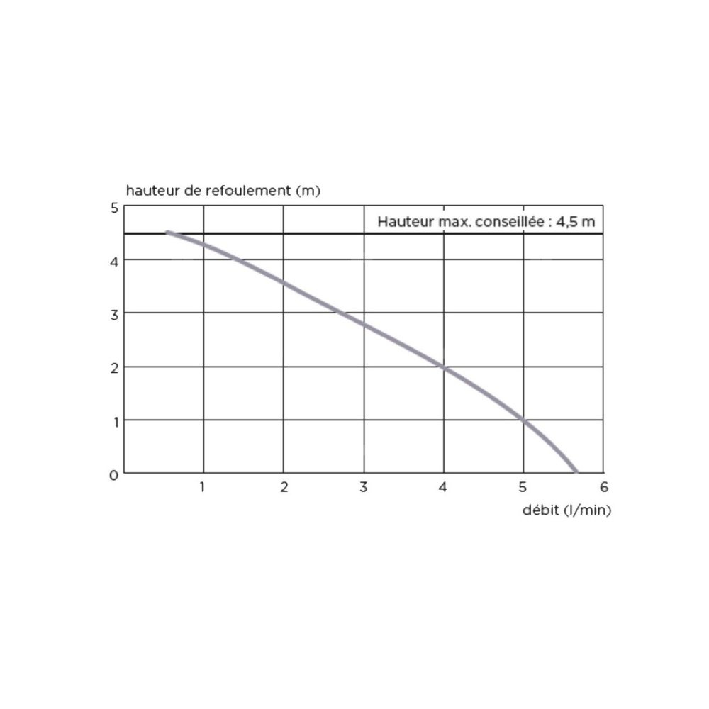4,5m ↑ / 50m →, możliwość podłączenia: kotły kondensacyjne, klimatyzacja, chłodnictwo, max. temp. pracy 80°C, max wydajność 342 l/h, moc urz. 60W, max. pobór prądu 0,6A.