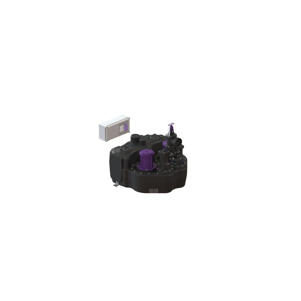 Przepompownia do ścieków zawierających fekalia i bez fekaliów jest wyposażona w dwie pompy zatapialne oraz zawór zwrotny. Pojemnik zbiorczy wykonany z wytrzymałego tworzywa sztucznego (PE) oferuje uniwersalne możliwości podłączenia i posiada przykręcany otwór wyczystkowy.