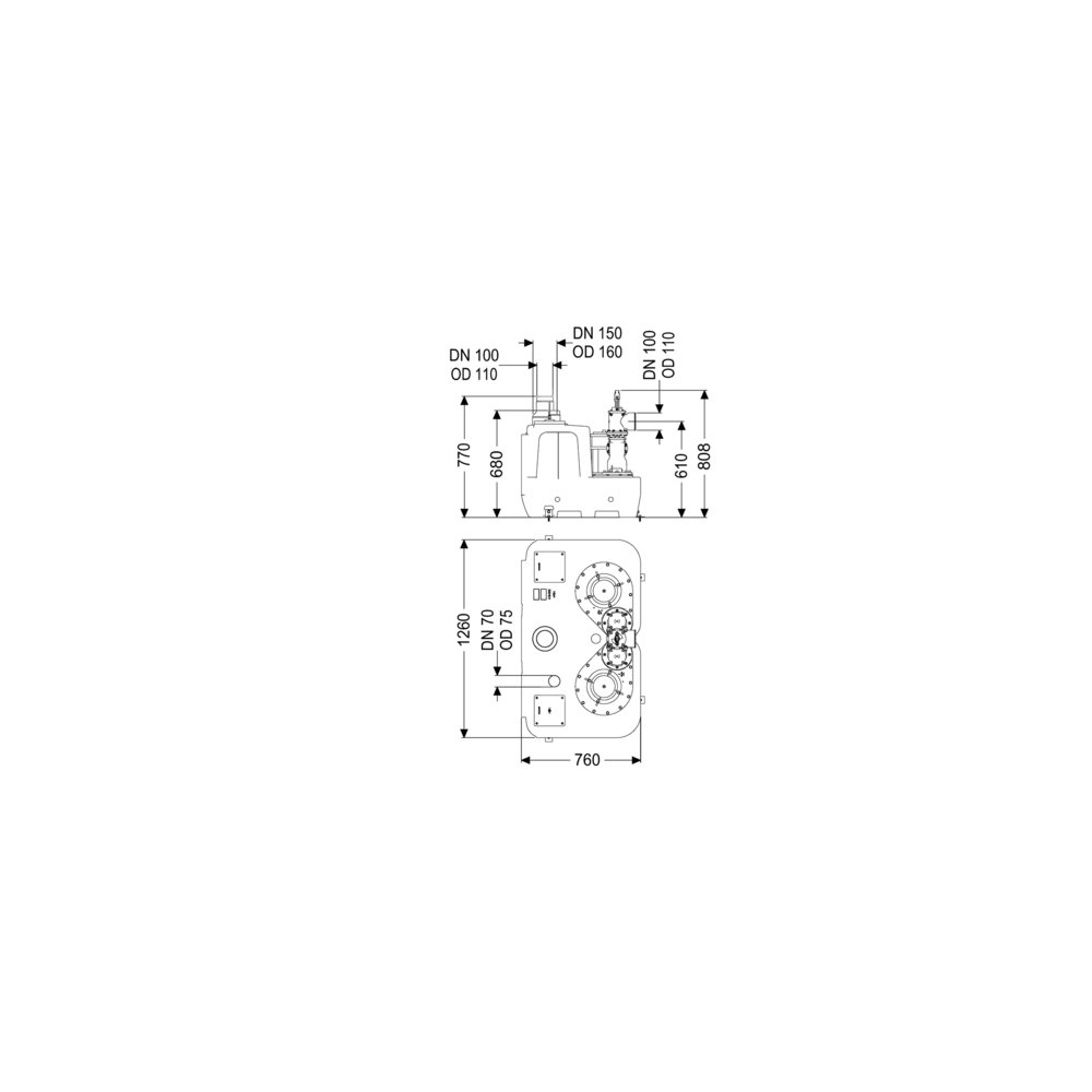 Przepompownia do ścieków zawierających fekalia i bez fekaliów jjest wyposażony w jedną lub dwie pompy zatapialną oraz zawór zwrotny. Pojemnik zbiorczy wykonany z wytrzymałego tworzywa sztucznego (PE) oferuje uniwersalne możliwości podłączenia i posiada przykręcany otwór wyczystkowy.
