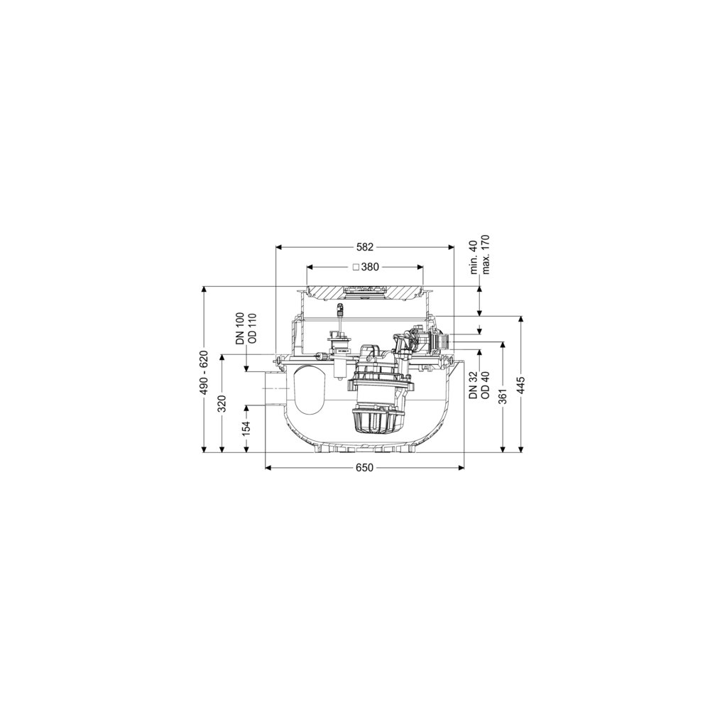 Gotowa do przyłączenia przepompownia do ścieków bez fekaliów jest wyposażony w jedną lub dwie pompy zatapialną oraz zawór zwrotny. Zbiornik wykonany z trwałego tworzywa sztucznego (PE) posiada otwartą komorę pompy. Zamknięcia jednoręczne umożliwiają łatwe wyjęcie zintegrowanych komponentów. Urządzenie do zabudowy w płycie podłogowej jest wstępnie zmontowane do montażu końcowego w miejscu instalacji.