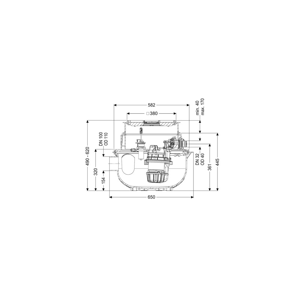 Gotowa do przyłączenia przepompownia do ścieków bez fekaliów jest wyposażony w jedną lub dwie pompy zatapialną oraz zawór zwrotny. Zbiornik wykonany z trwałego tworzywa sztucznego (PE) posiada otwartą komorę pompy. Zamknięcia jednoręczne umożliwiają łatwe wyjęcie zintegrowanych komponentów. Urządzenie do zabudowy w płycie podłogowej jest wstępnie zmontowane do montażu końcowego w miejscu instalacji.