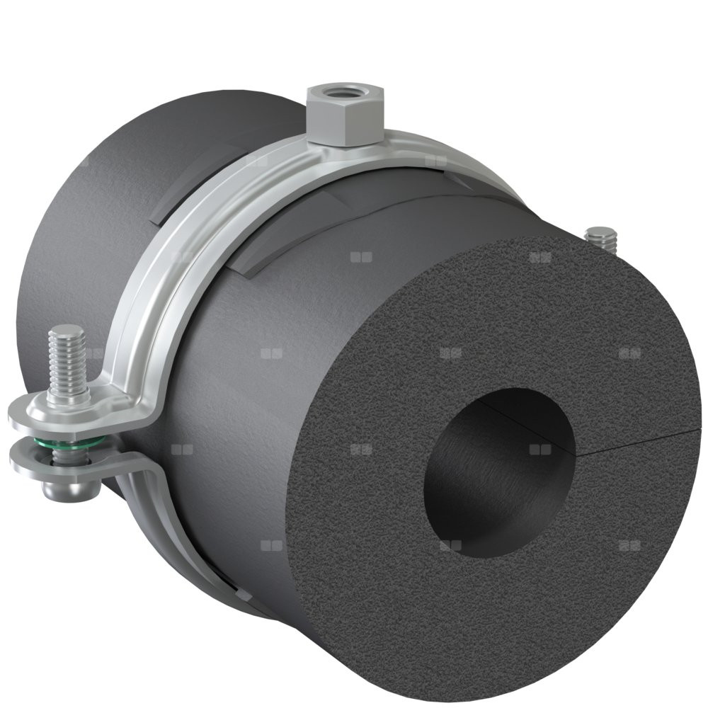 Materiał: elementy nośne wykonane z tworzywa sztucznego sklejonego z pianką kauczukową, nie zawiera CFC, na zewnątrz obejma stalowa ocynkowana z nakrętką montażową