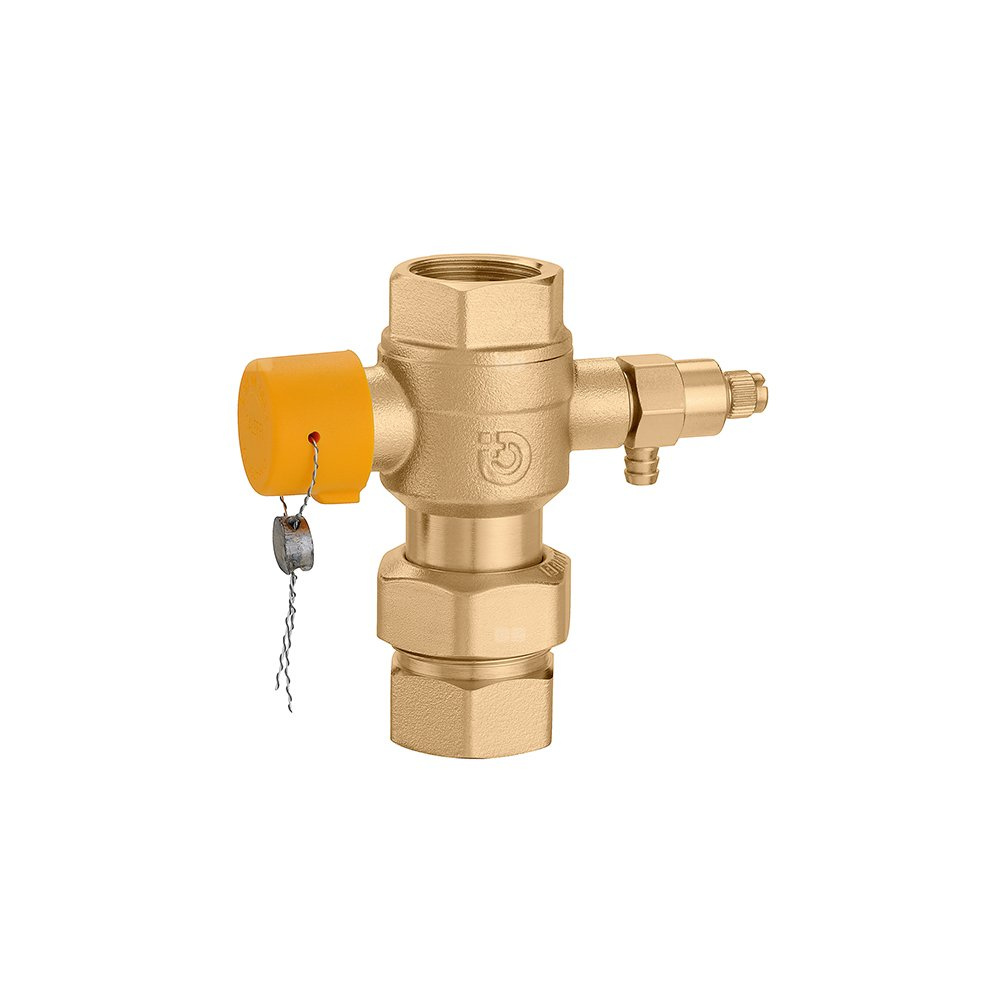 Kulowy zawór odcinający, do naczyń wzbiorczych, z kurkiem spustowym.