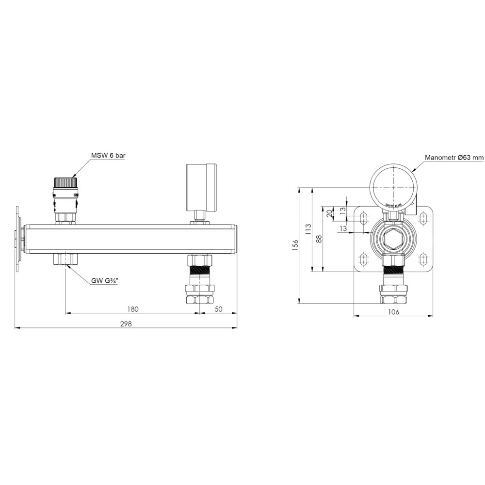 Umożliwia podłączenie naczynia wzbiorczego.