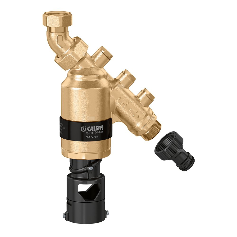 Ze złączką do podłączenia do zaworu czerpalnego na zasilaniu i złączką do podłączenia węża na wyjściu.