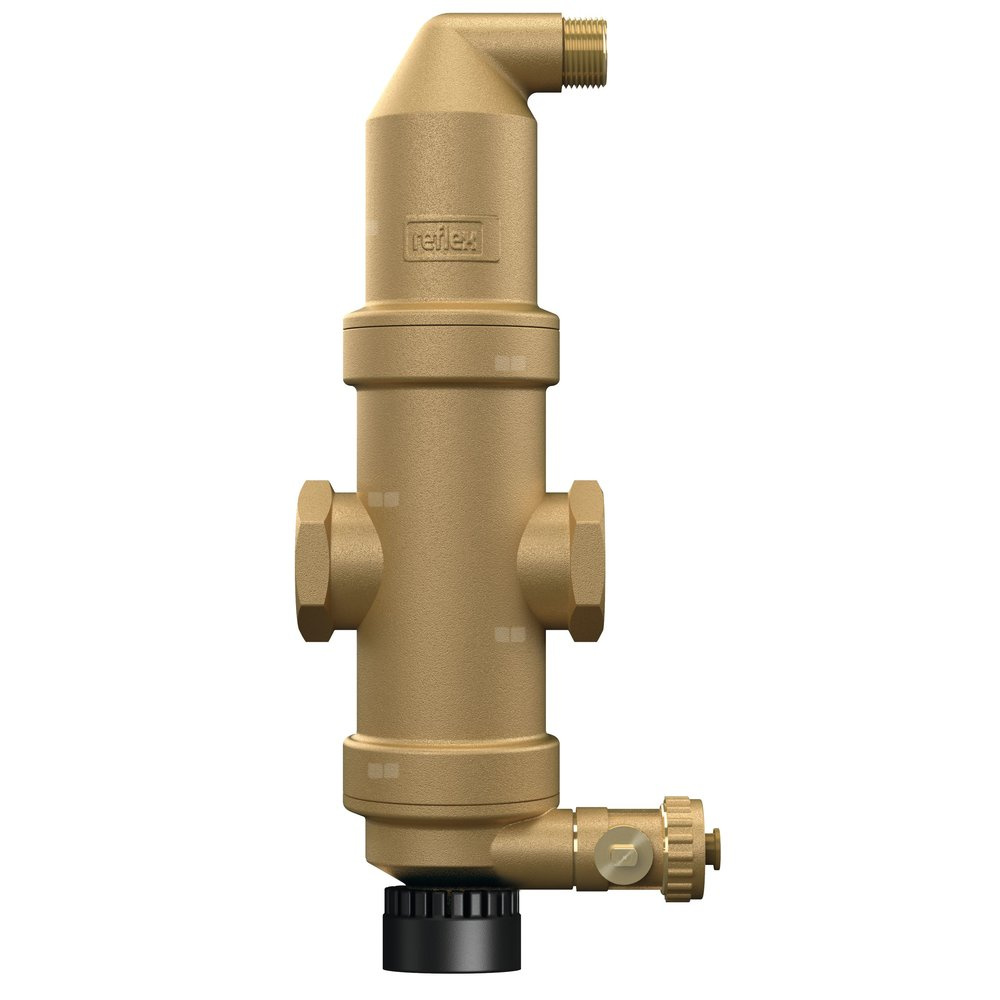 Dwufunkcyjny separator mikropęcherzy powietrza, zanieczyszczeń i osadów do instalacji grzewczych i chłodniczych oraz innych zamkniętych instalacji, w których czynnikiem są płyny. Zastosowanie do wody oraz mieszaniny wody z glikolem o stosunku do 50/50%.