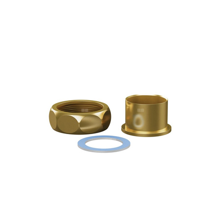Złączka przyłączowa z mosiężną końcówką lutowaną do rur miedzianych i mosiężna nakrętka złączkowa w komplecie (2 szt.) do montażu przez klienta.