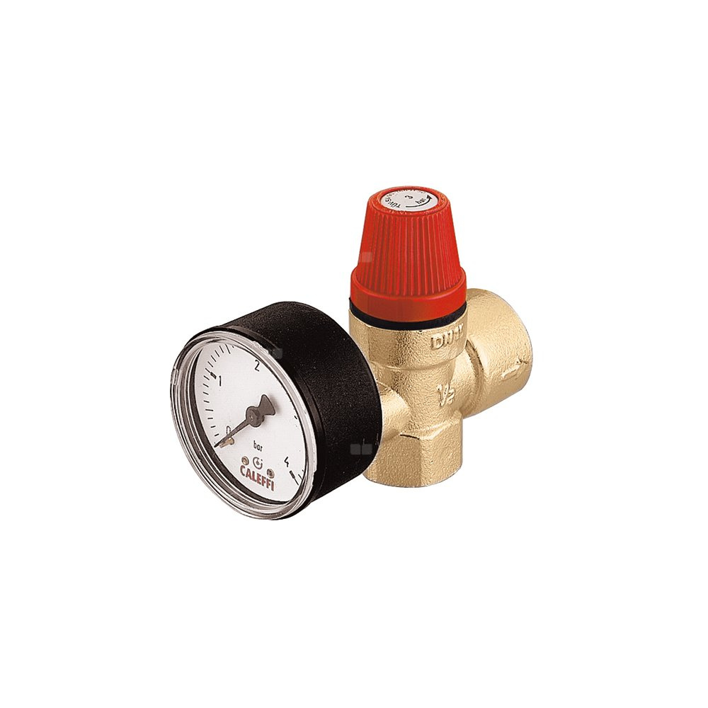 Zawór bezpieczeństwa. Z manometrem Ciśnienie otwarcia: + 20% ustawionego Ciśnienie zamknięcia: - 20% ustawionego Przyłącze: G 1/2" (ISO 228-1) GW, wlot. Przyłącze: G 3/4" (ISO 228-1) GW, wylot. Zakres temperatury medium: 5–120 °C. Nastawa: 2,5 bar. Maksymalan moc upustowa: 50 kW. Maksymalne stężenie glikolu: 50 %. Medium: woda, Roztwory glikolu.