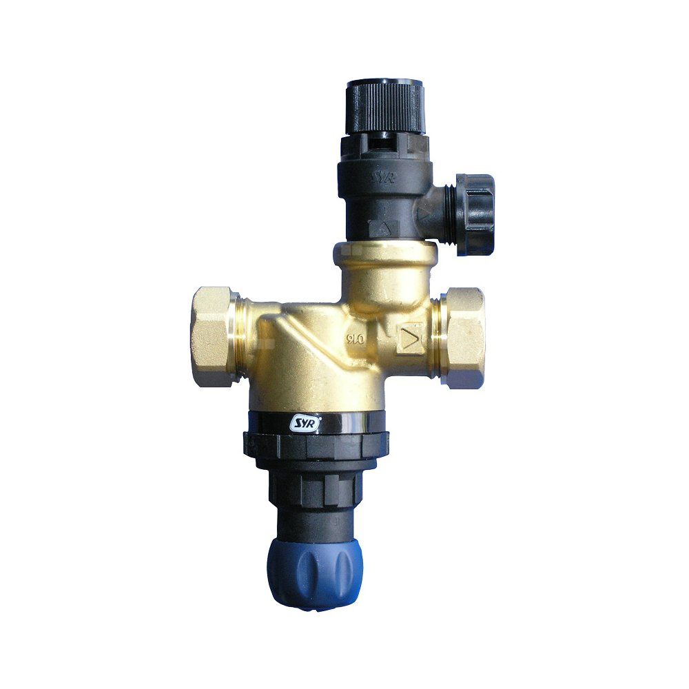 Zespół 2312 Multibloc składa się z: reduktora ciśnienia typu 312 Compact z siatką ochronną o oczkach 0,25 mm, zaworu zwrotnego, membranowego zaworu bezpieczeństwa typu 2115N wyposażonego w odporne na uszkodzenia siedzisko ze stali nierdzewnej i dodatkowego przyłacza dla przeponowego naczynia wzbiorczego.