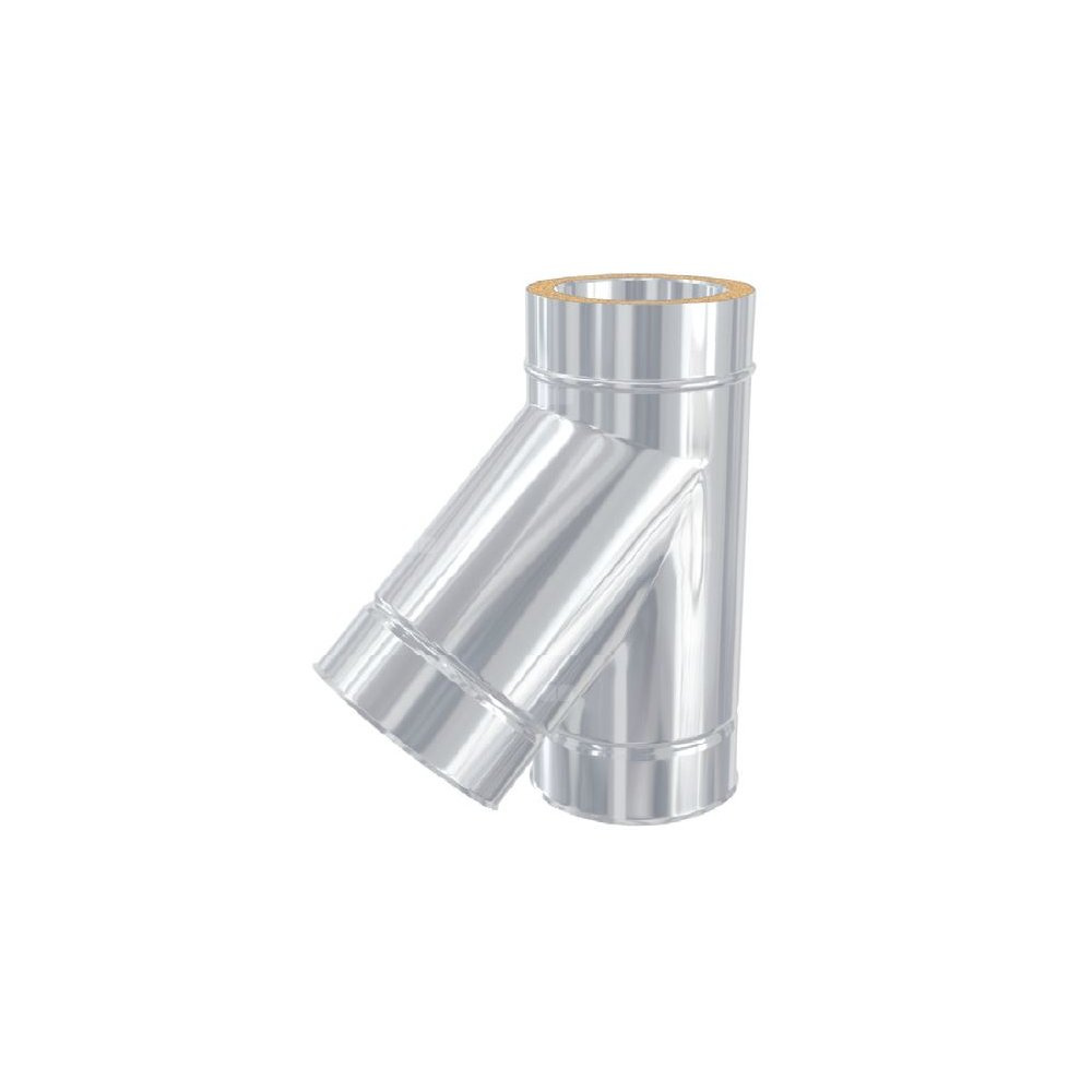 Trójnik łączy komin z częścią poziomą (czopuchem) pod kątem 45∘. Elementy tego systemu łączą się ze sobą kielichowo, na połączeniu stosujemy obejmę spinającą. System izolowany, zewnętrzny stosowany do wentylacji.