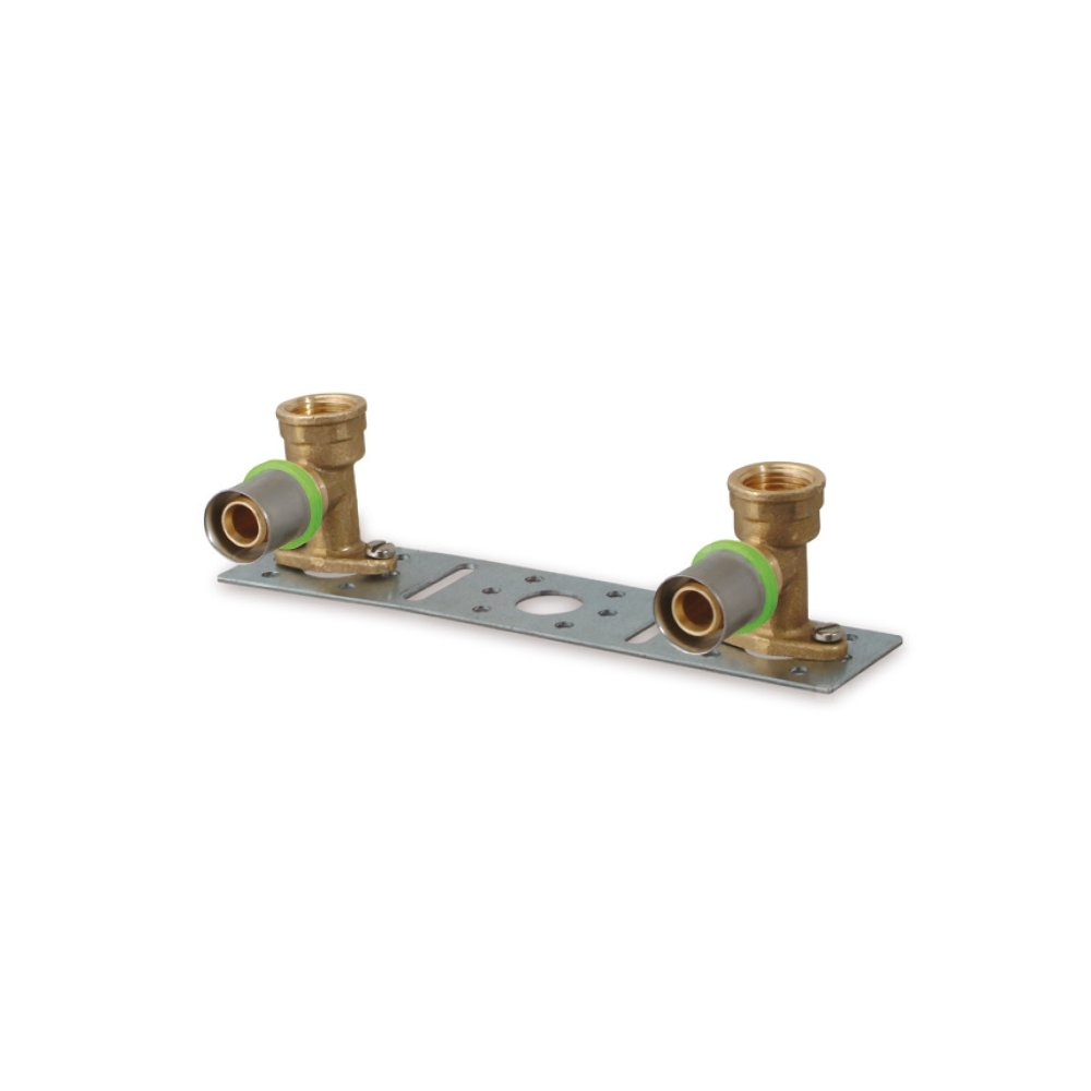 Kolano naścienne zaprasowywane na listwie QIK, mosiądz, 1/2'' x 16 mm (GW x złącze zaprasowywane), 40 mm