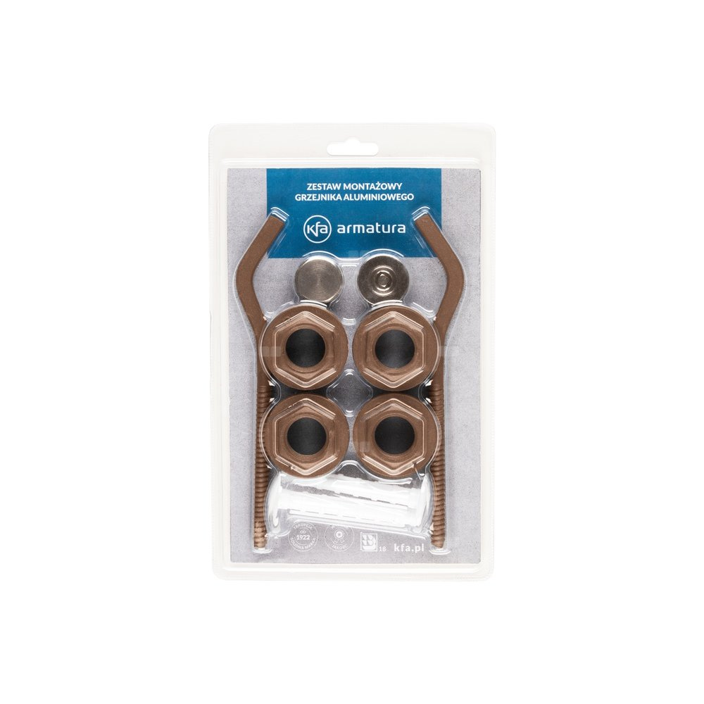 Komplet korków i haków do grzejnika w kolorze miedzianym
