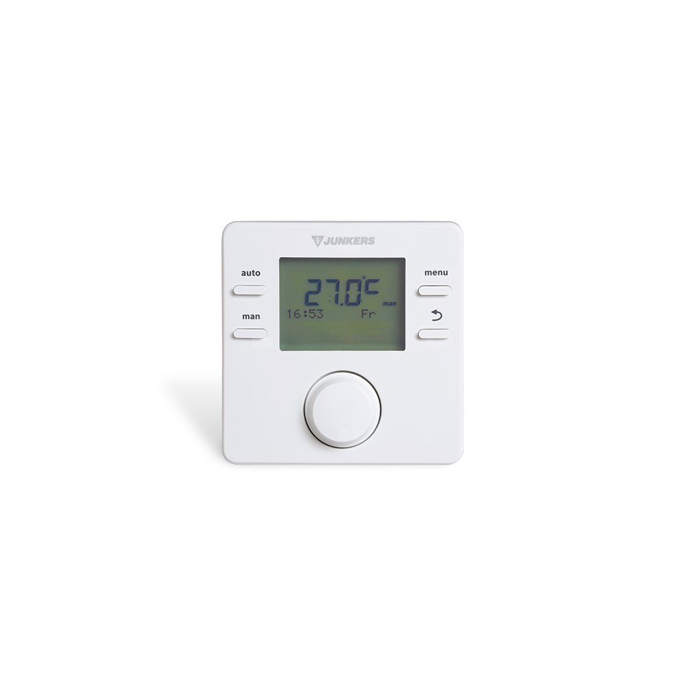 To regulator pokojowy z programem tygodniowym (6 czasów na dobę), który umożliwia sterowanie jednym obiegiem c.o. z zaworem mieszającym w połączeniu z modułem MM100 lub bez zaworu mieszającego, jednym obiegiem c.w.u. (funkcje w zależności od zastosowanych urządzeń).