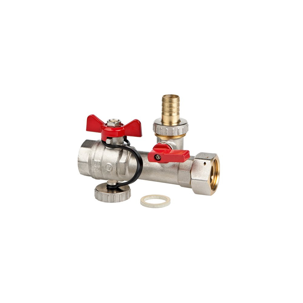 Zawór kulowy VALVEX Spin mosiądz niklowany, PN25 3/4'' GW z zaworem spustowym, uchwyt: motylek (czerwony)