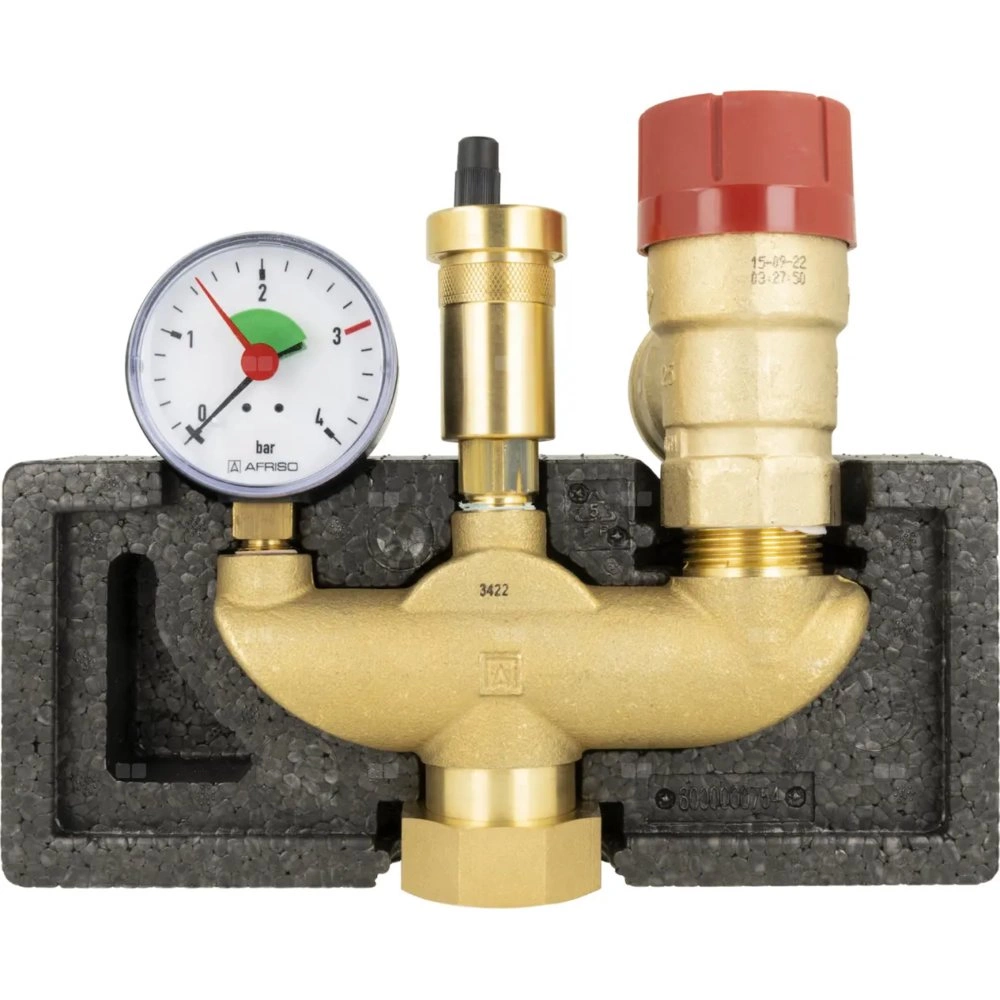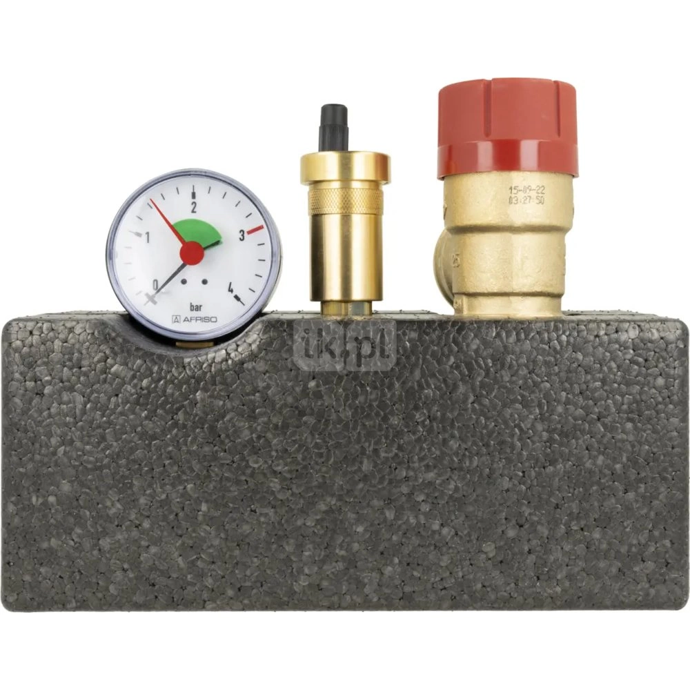 Manometr i odpowietrznik wyposażone w zawory montażowe.