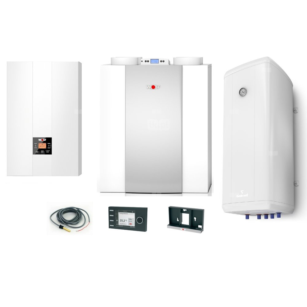 Pakiet - Kocioł gazowy jednofunkcyjny WOLF FGB-24 kondensacyjny wiszący 5.3 - 20.7 kW + Czujnik c.w.u. + RegulatorBM-2 + RekuperatorCWL 400P + Zasobnik c.w.uVulcan 100L wiszący