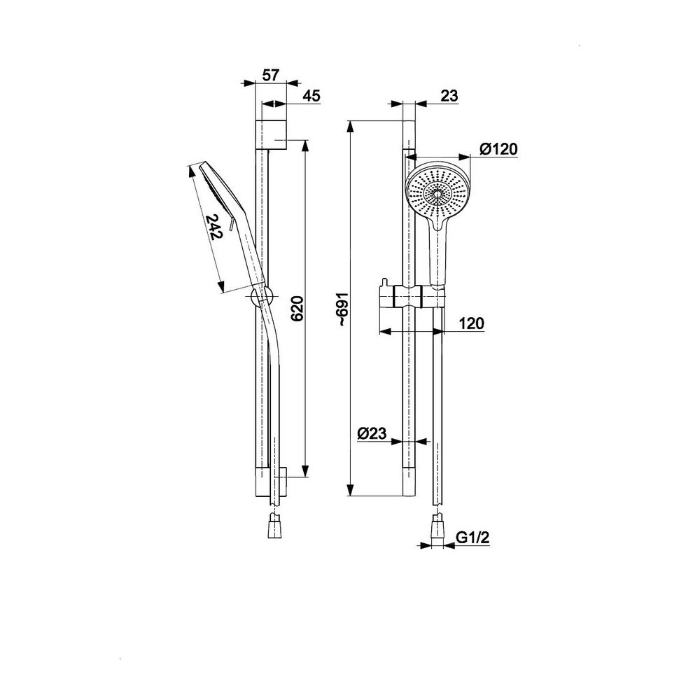 Natrysk przesuwny otava ścienny, kompletny, rączka 3 funkcyjna z przepływem 6 l/min, chrom