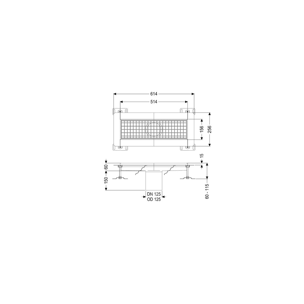 Odpływ szczelinowy Ferrofix z blachy ze stali nierdzewnej o grubości 2,0 mm (wytrawiany zanurzeniowo) posiada widoczne elementy szlifowane, spadek podłużny i poprzeczny, nóżki do poziomowania wysokości, dospawane poprzeczki dystansowe do zabezpieczenia rusztów oraz króciec odpływowy ze stali nierdzewnej.
