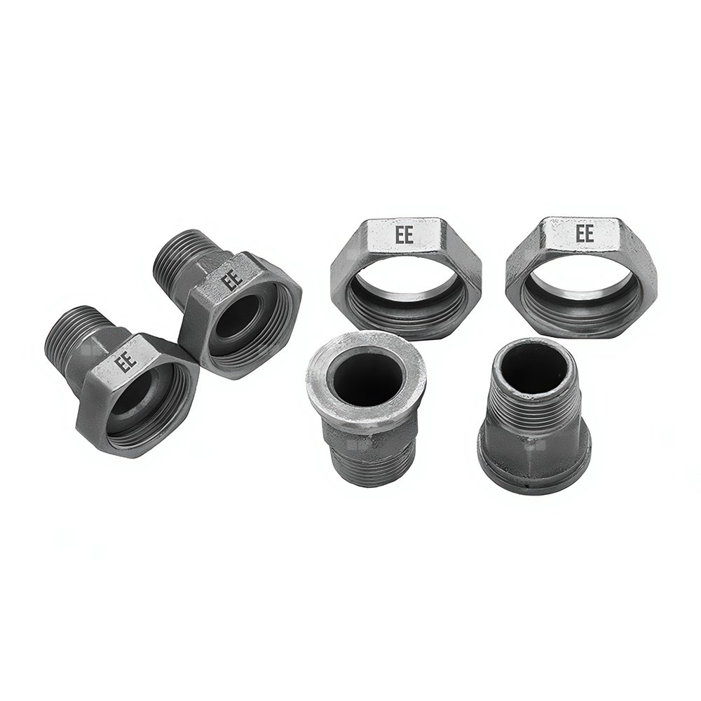 Łączniki z żeliwa ciągliwego białego marki EE znajdują zastosowanie w połączeniach rurowych gwintowanych, a w szczególności w sieciach instalacji wodociągowych, gazowych, parowych, centralnego ogrzewania, tryskaczowych itp. do przenoszenia cieczy i gazów nieagresywnych.