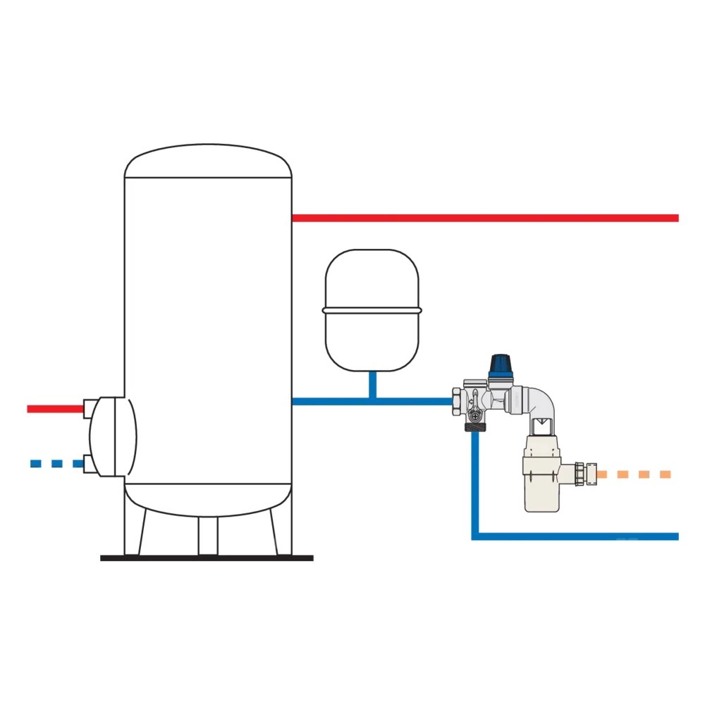 Hydrauliczna grupa bezpieczeństwa do zasobników c.w.u. z zaworem odcinającym i zaworem zwrotnym z możliwością nadzoru 3/4"