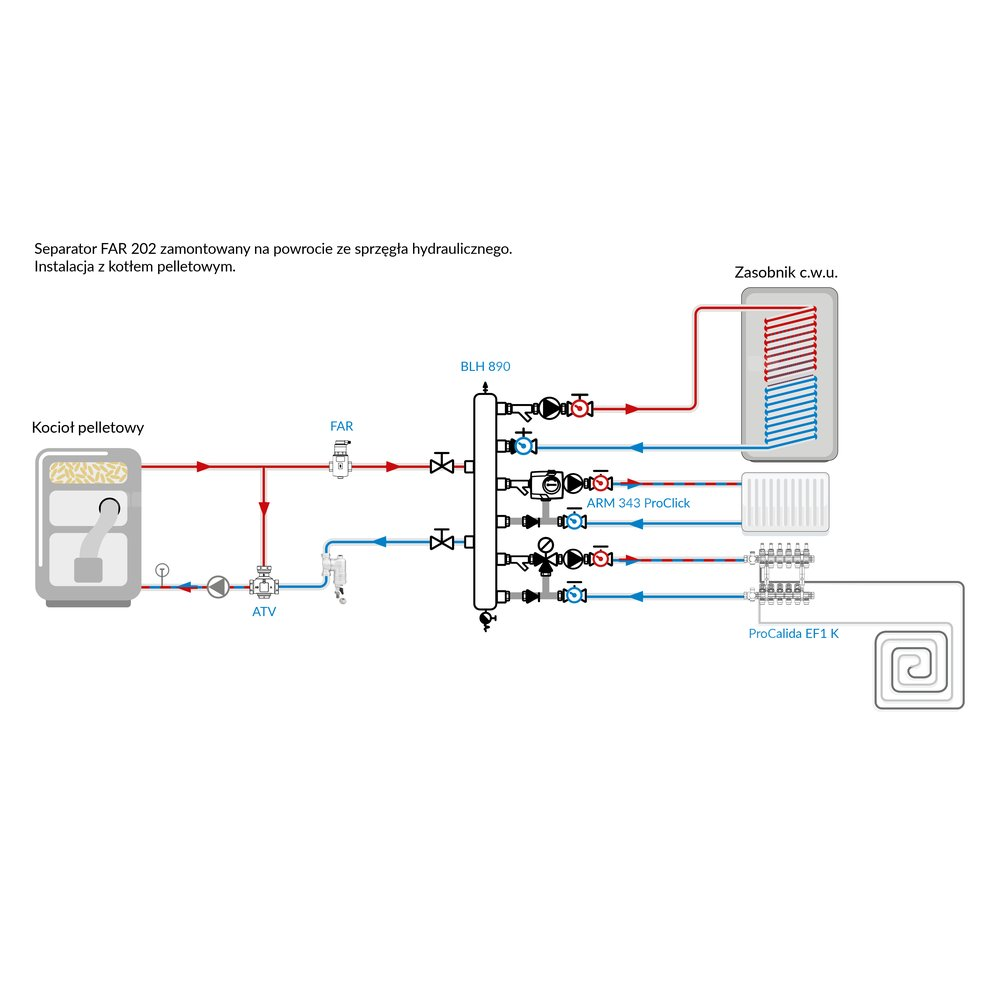 Stosowany w instalacjach grzewczych i chłodzących.Montowany na powrocie z instalacji przed źródłem.