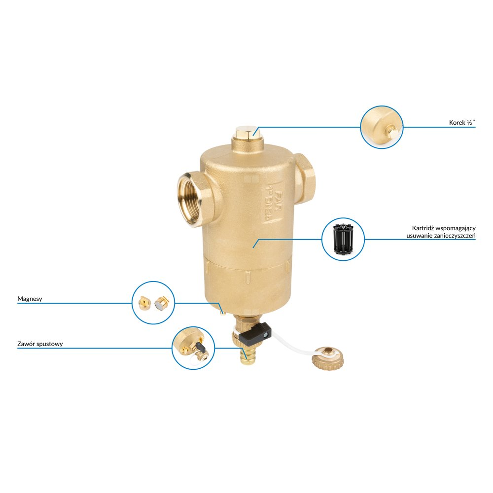 Stosowany w instalacjach grzewczych i chłodzących.Montowany na powrocie z instalacji przed źródłem.