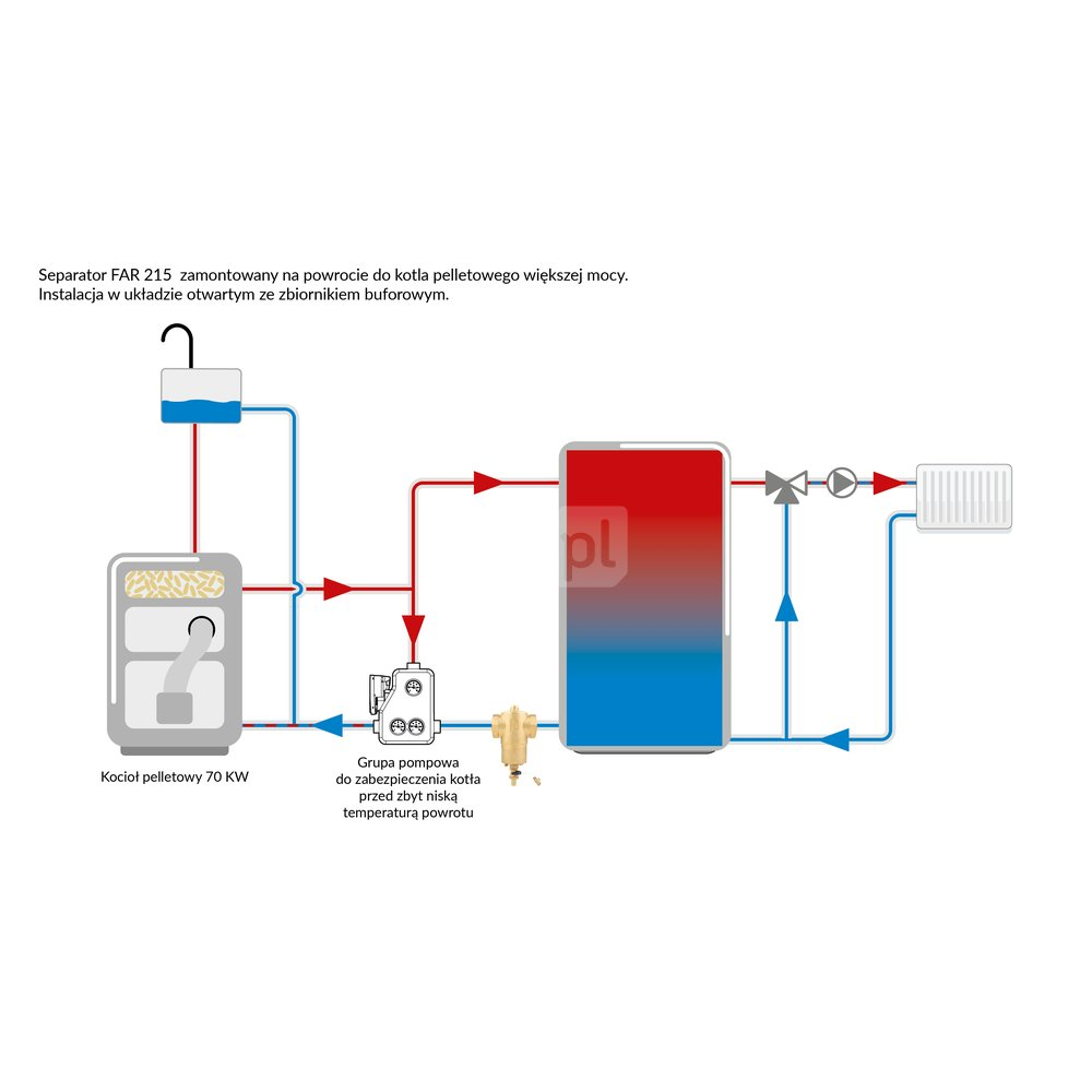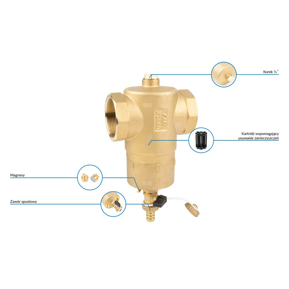 - Stosowany w instalacjach grzewczych i chłodzących.- Montowany na powrocie z instalacji przed źródłem.