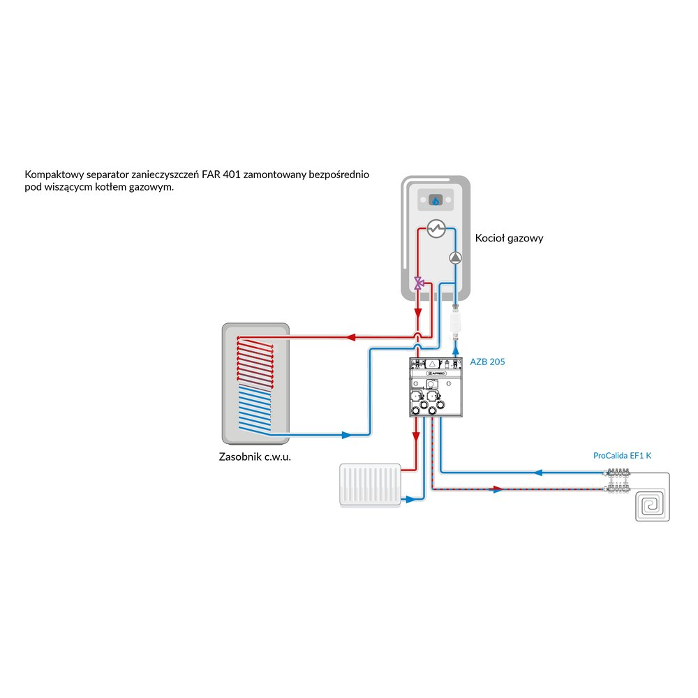 Stosowany w instalacjach grzewczych.Montowany bezpośrednio pod wiszącym kotłem gazowym