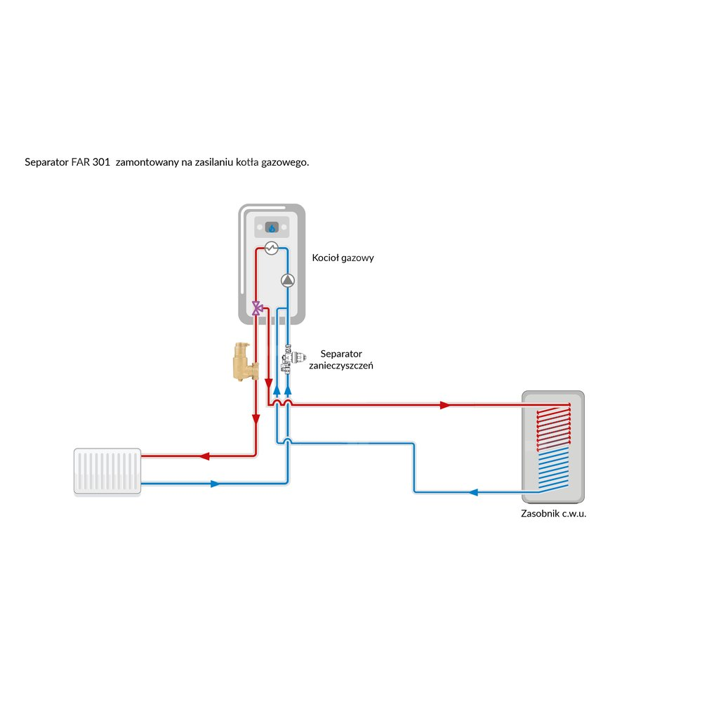 Stosowany w instalacjach grzewczych i chłodzących.W instalacjach grzewczych montowany na zasilaniu, w chłodzących na powrocie.
