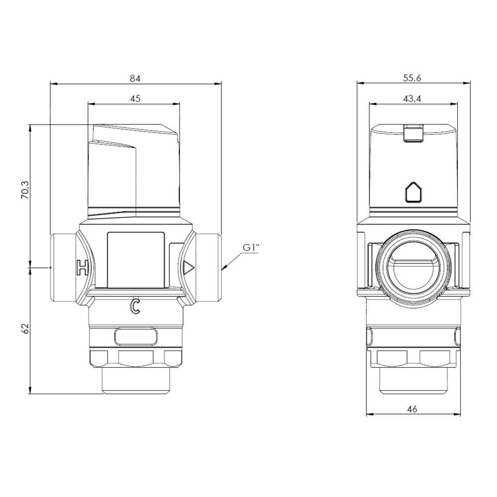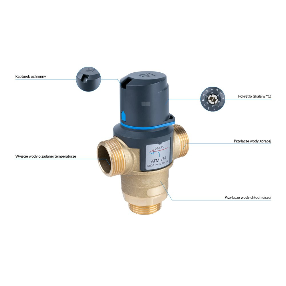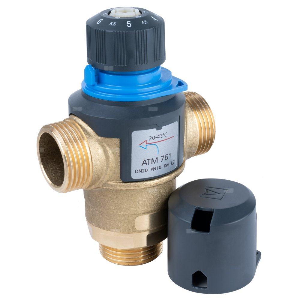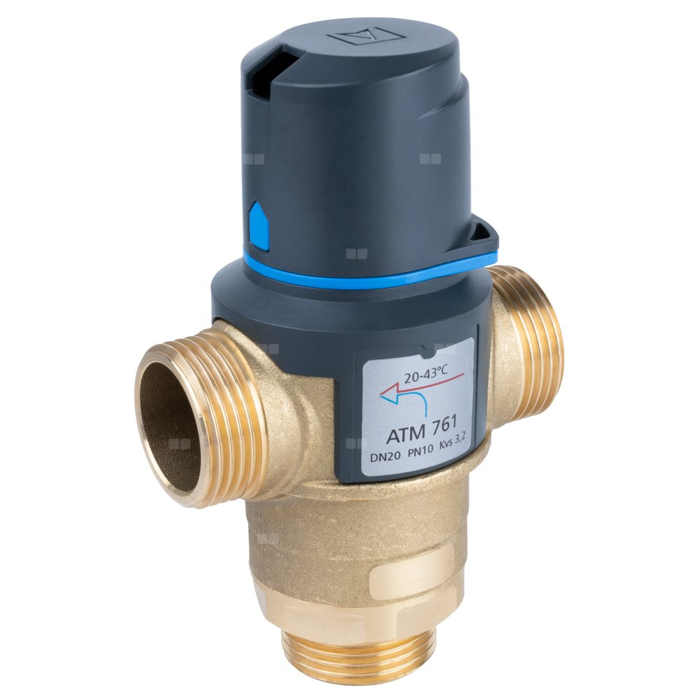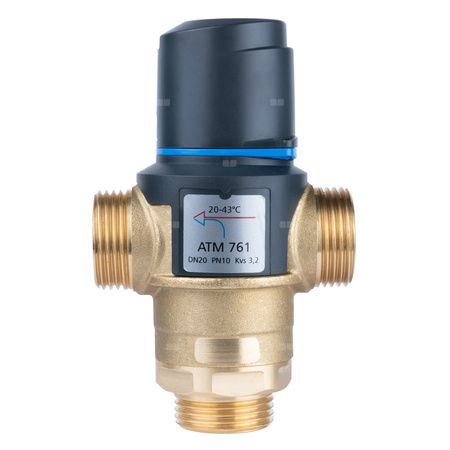 Zawór regulacyjny termostatyczny do wody ciepłej AFRISO ATM 761 mosiądz GZ 1'', DN 20, zakres temp. 20-43'C, Kvs 3.2 m3/h, maksymalna temperatura 90'C, maksymane ciśnienie 10 bar