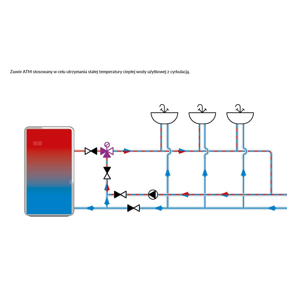 - Stosowany w instalacjach ogrzewania podłogowego i c.w.u.- W instalacjach c.w.u. montowany między zasobnikiem a punktami poboru wody.