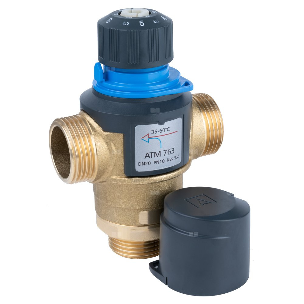 Zawór regulacyjny termostatyczny do wody ciepłej AFRISO ATM 763 mosiądz GZ 1'', DN 20, zakres temp. 35-60'C, Kvs 3.2 m3/h, maksymalna temperatura 110'C, maksymane ciśnienie 10 bar