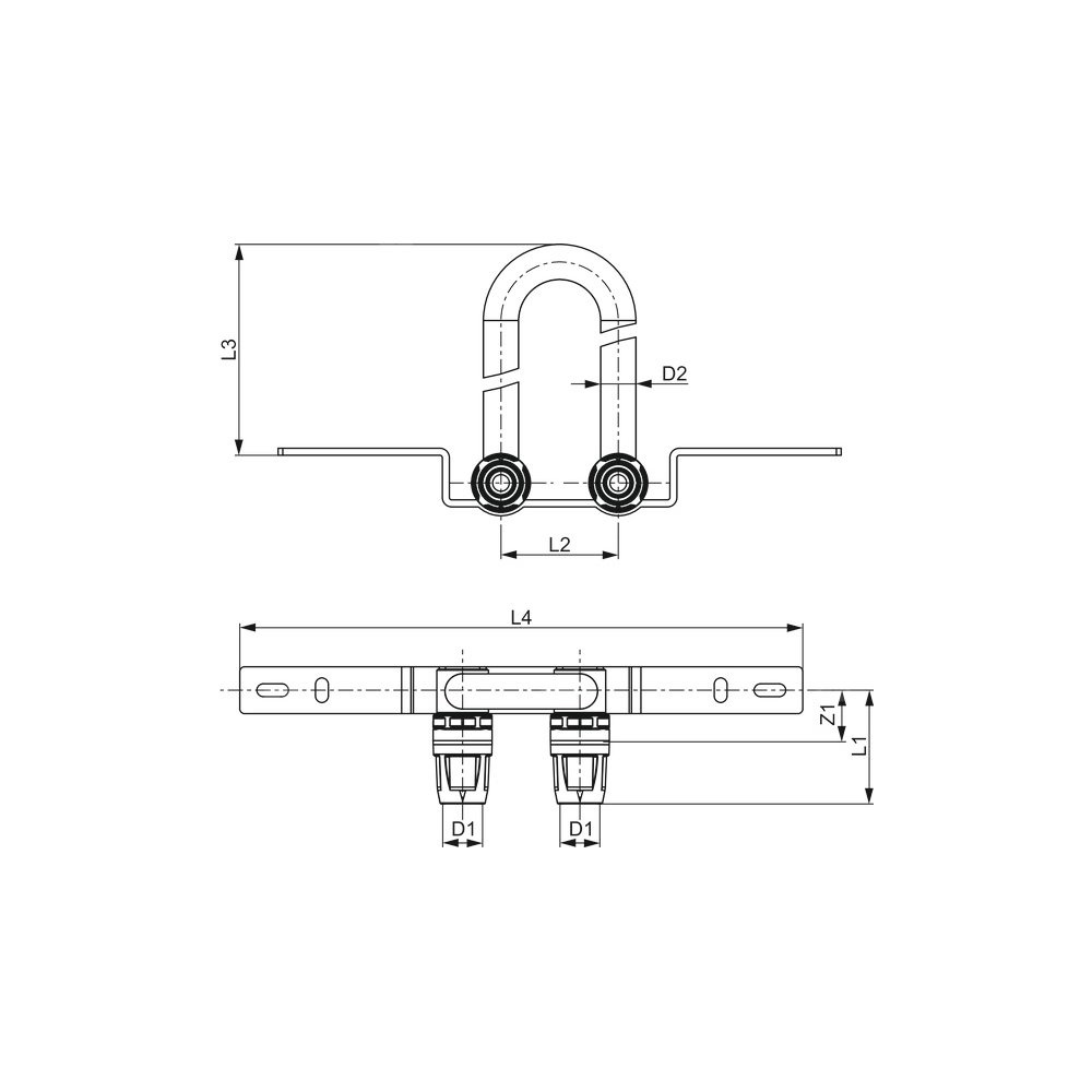 Garnitur montażowy do grzejników z połączeniem wtykowym. Do kompaktowego grzejnika z wbudowanym zaworem, podłączonego do ściany, do instalacji grzewczych. Rurka miedziana 15 mm, niklowana.